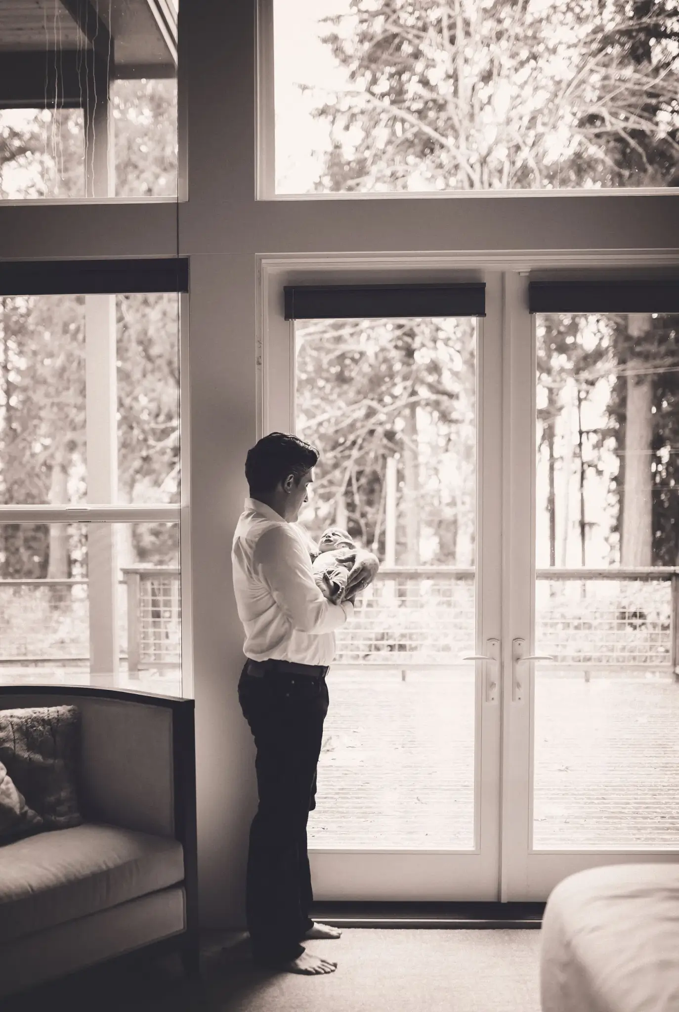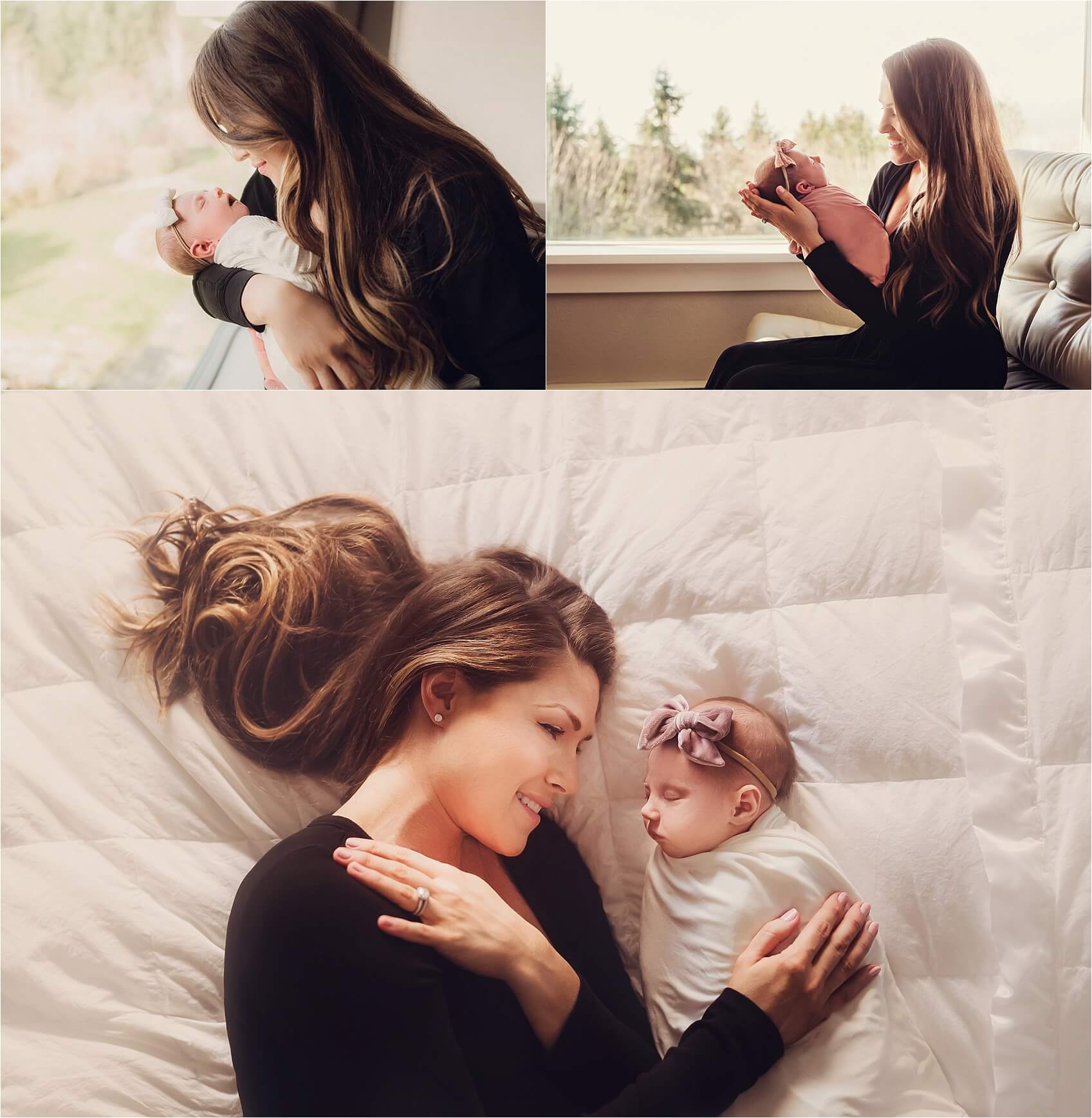 Studio newborn sessions take place at Amber's professional studio in Olympia and they tend to focus on highly-posed images. Lifestyle newborn sessions take place in your home and consist of more candid and natural posing. With studio sessions a variety of photographer-provided props, wraps, accessories and special backdrops are used. With lifestyle sessions we are using elements found in your home and focusing on surroundings that are natural for baby (ie their crib, bassinet, a special blanket, rocking chair), and a lot of time is spent snuggling in family member's arms. Studio sessions require a heavily sleeping baby in order to achieve the intricate posing we are striving for. Therefore they can take longer as we need to allow time for soothing and feeding in order to keep baby asleep. Lifestyle sessions are not as intricately posed and therefore can be done with baby awake or asleep, which typically allows for a shorter session length. With studio sessions we are using professional studio lighting, so the time of day does not matter. With lifestyle sessions we are using the natural light that is coming from your windows, so we need to plan your session time according to the best natural light. In general, studio sessions tend to take a fine art approach, whereas lifestyle sessions take more of a photojournalistic approach. One is not better than the other, it simply comes down to what appeals to you and works best for your family!