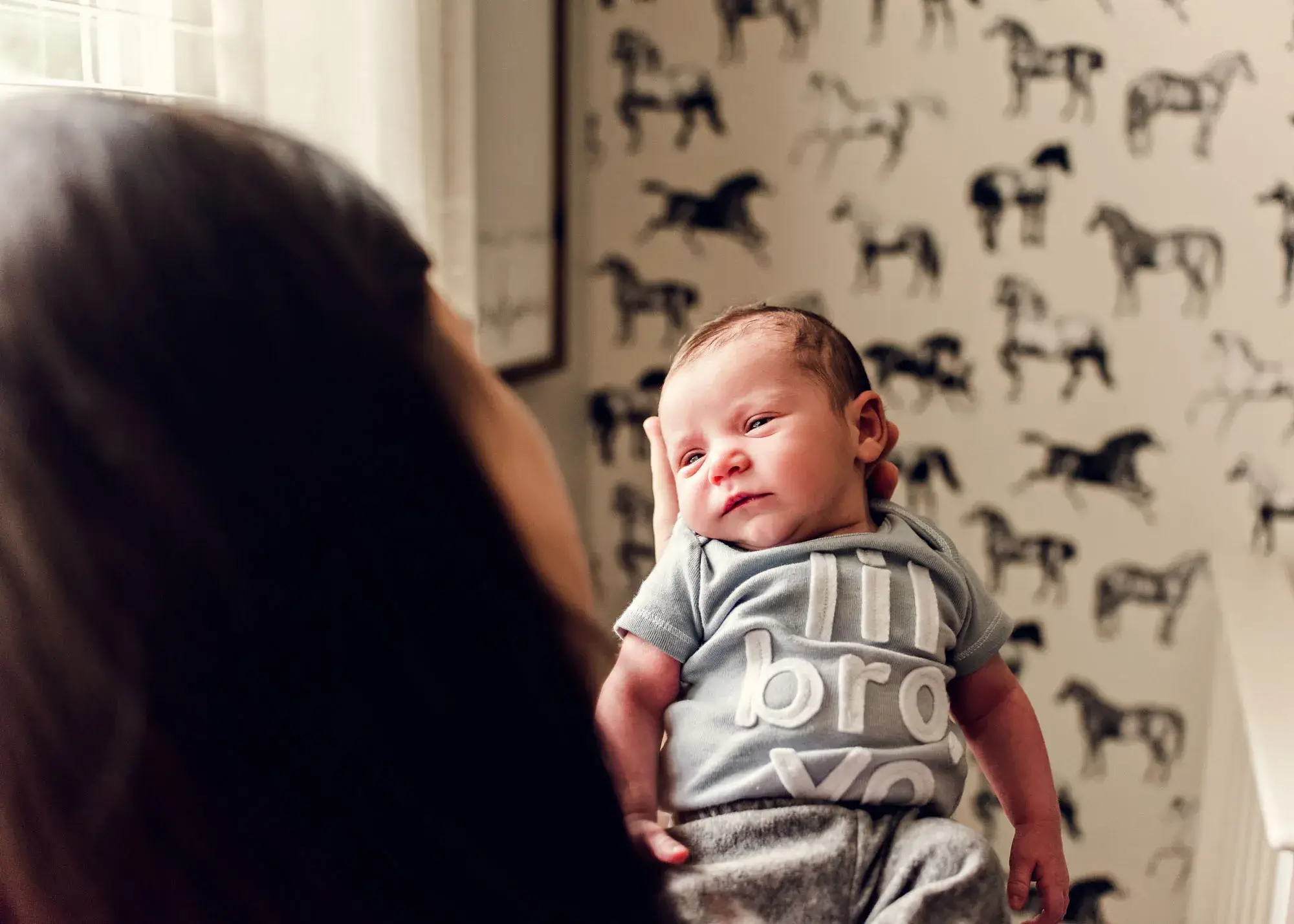 The real magic happens as we document those heartfelt little moments that really count… sister peeking into baby’s crib as they nap, the whole family piled up on mom and dad’s bed admiring the new addition, or a quiet feeding moment with mom and her new baby in the rocking chair. Let’s capture all the sweet details of baby’s nursery that you spent so much time curating as you awaited their arrival.